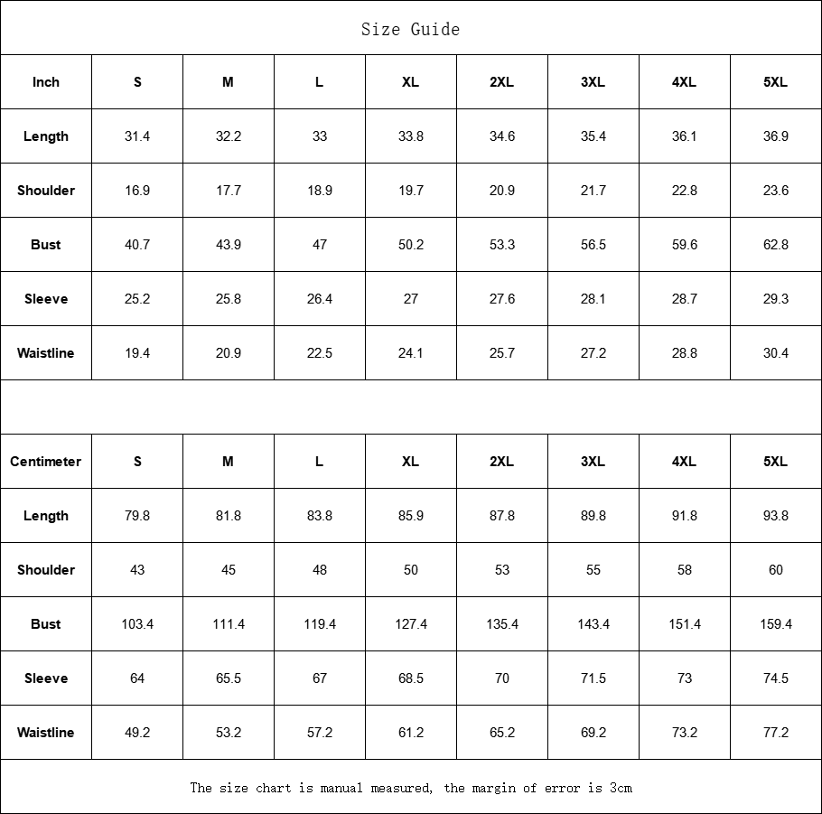 The size chart is manual measured, the margin of error is 3cm