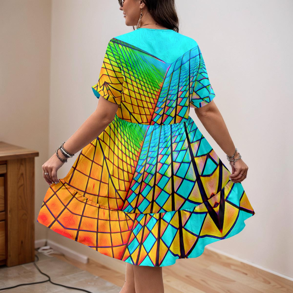 “Opera House” Women’s Floral V-Neck Short Sleeve Dress
