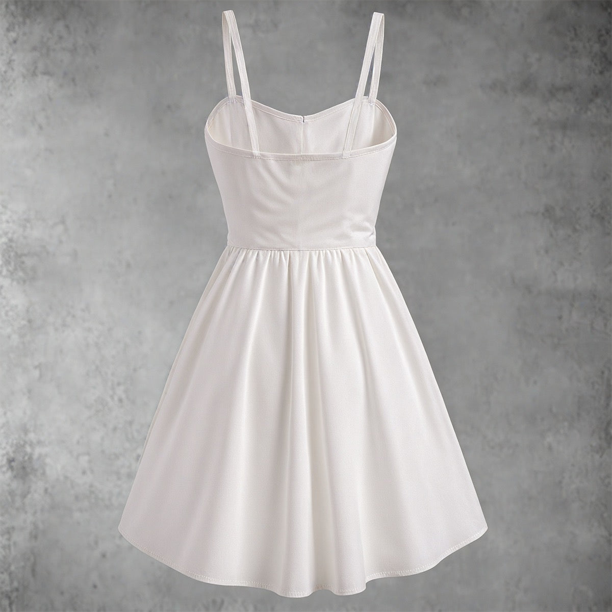 This two-tone spaghetti-strap dress combines timeless glamour with effortless everyday style. The smooth bodice with flattering seam detailing and flowing skirt create a feminine silhouette that's perfect for warm weather. The soft cotton-polyester fabric is breathable and comfortable, yet retains its shape without sacrificing structure. Whether you're heading out for a casual outing or a summer event, this dress will give you an effortlessly chic look.