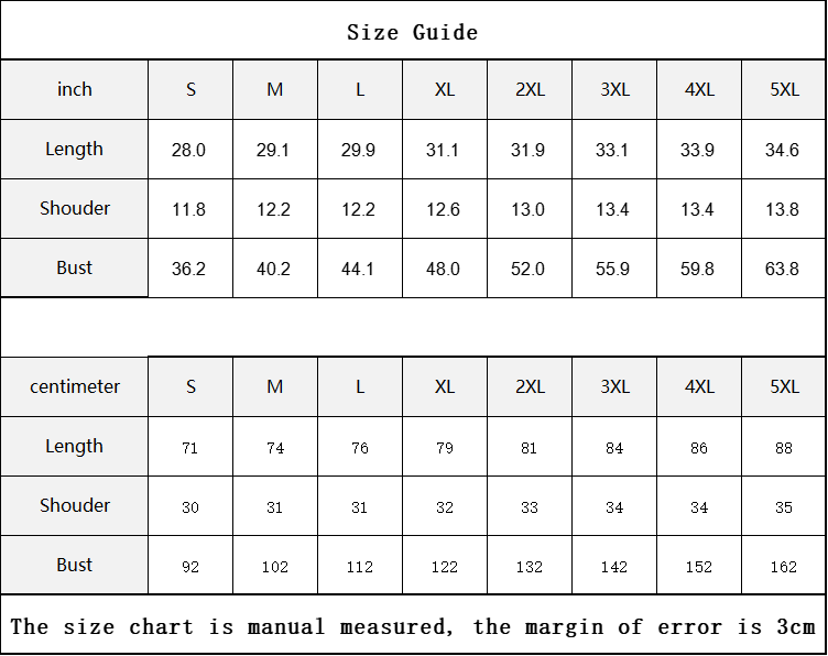 | centimeter | S | M | L | XL | 2XL | 3XL | 4XL | 5XL |