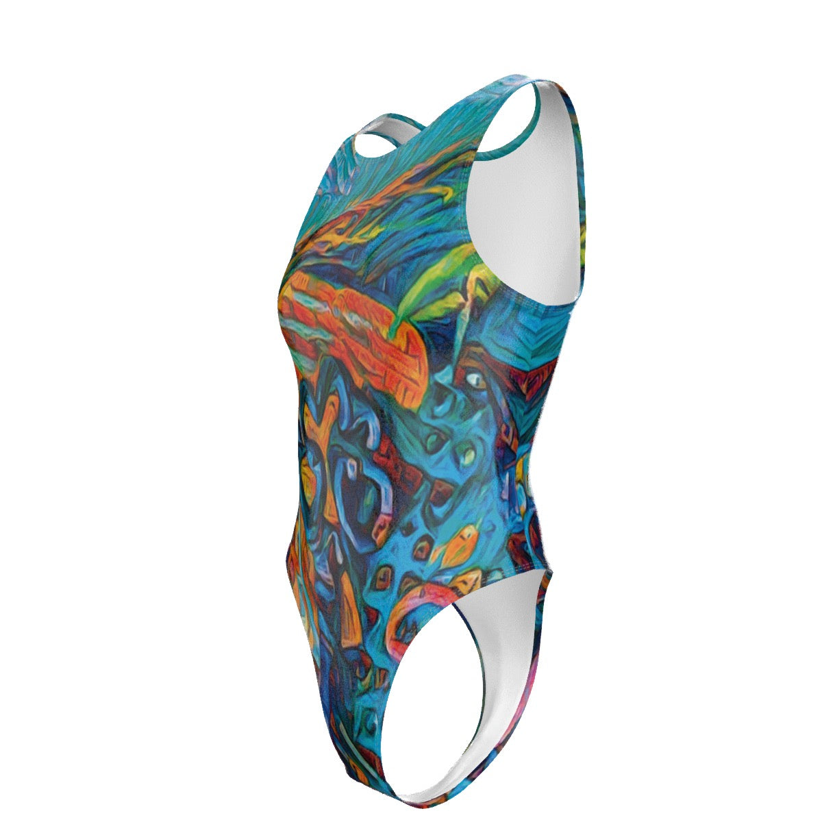 The full-width printed swimsuit can make you the most individual when on vacation by the sea! Simple and elegant cut make it a must-have classic swimwear