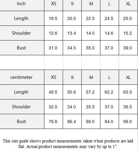 | Bust | 31.0 | 34.0 | 35.0 | 37.0 | 39.0 |