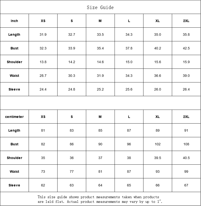 This size guide shows product measurements taken when products are laid flat. Actual product measurements may vary by up to 1".