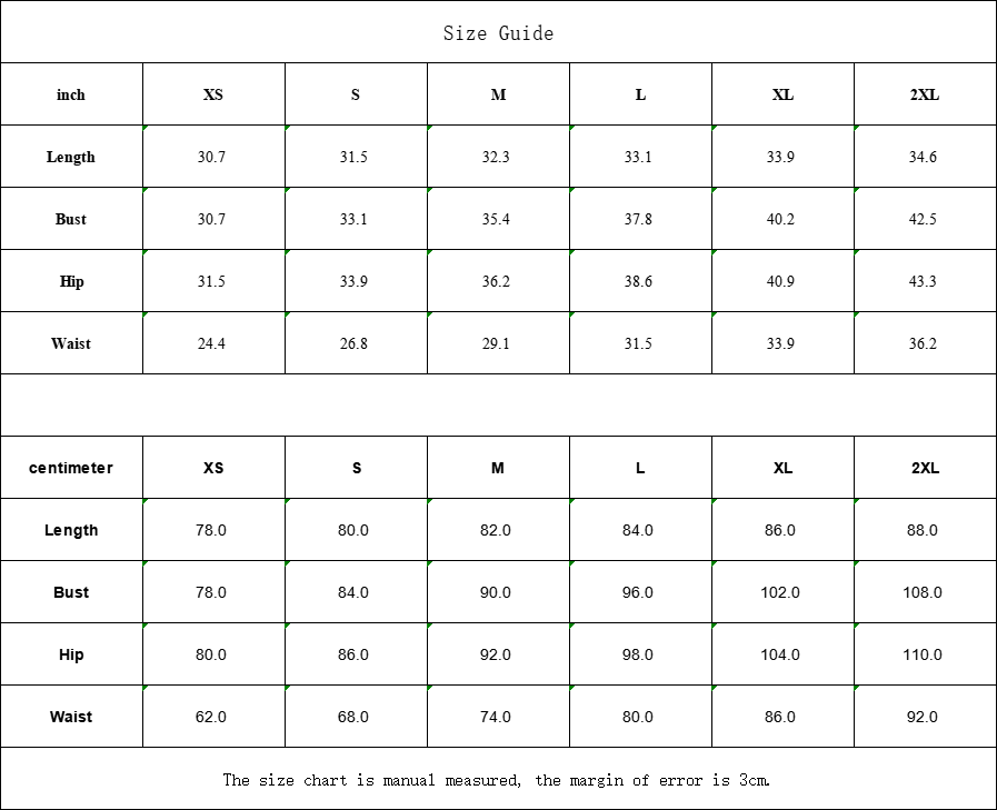 | Bust | 78.0 | 84.0 | 90.0 | 96.0 | 102.0 | 108.0 |
