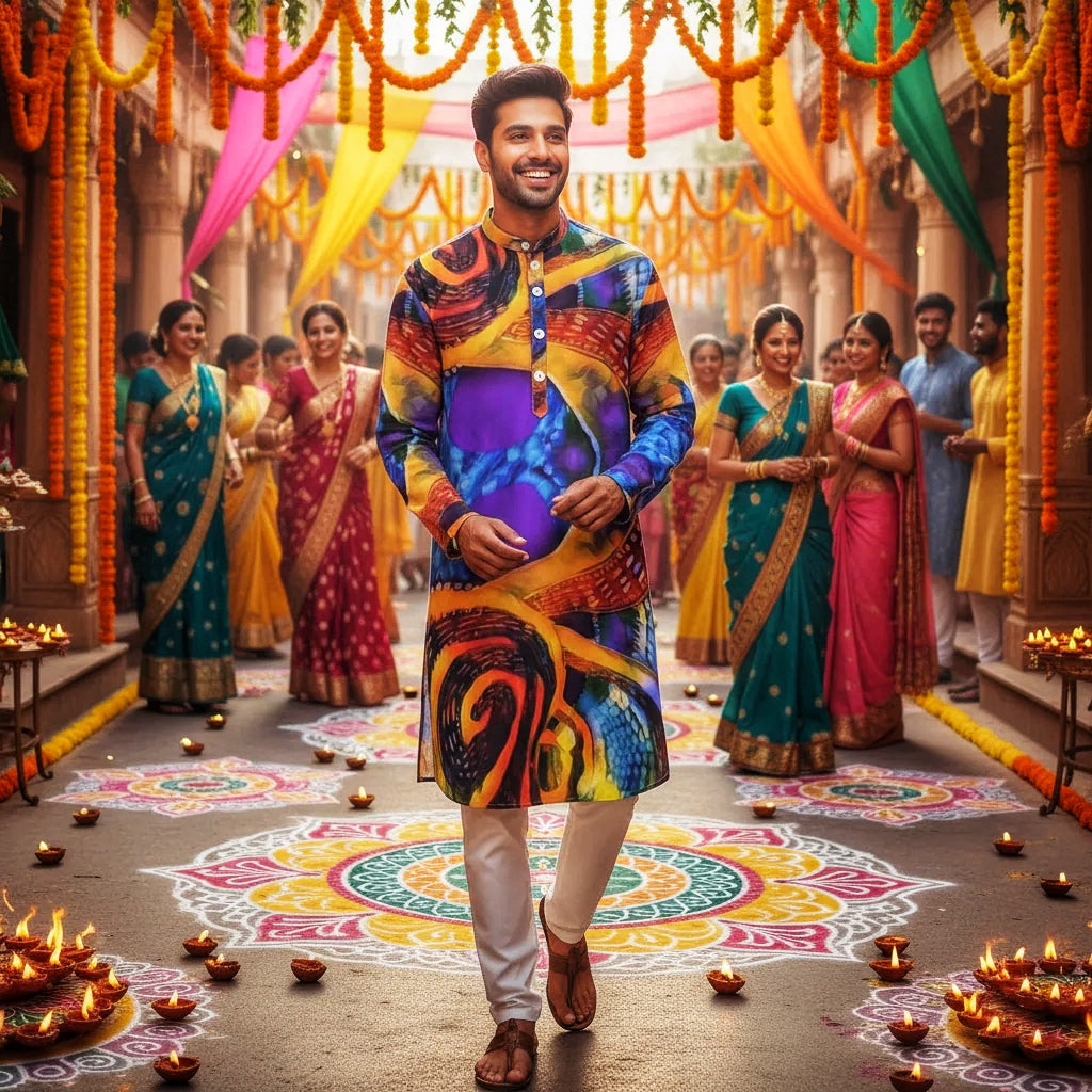 “Colour Vortex” Men's Stand-up Collar Long Shirt
