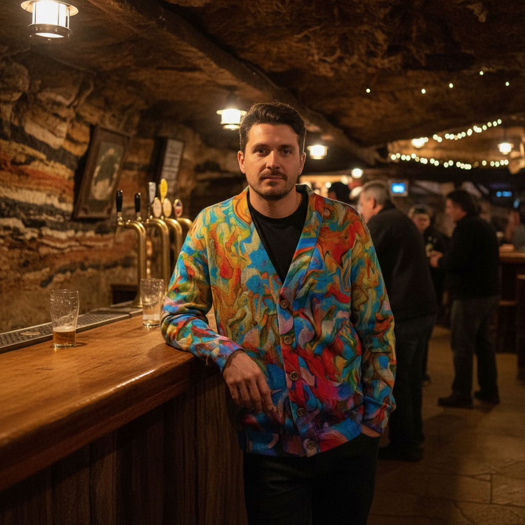 “Coober Pedy” Unisex V-neck Knitted Fleece Cardigan With Button Closure