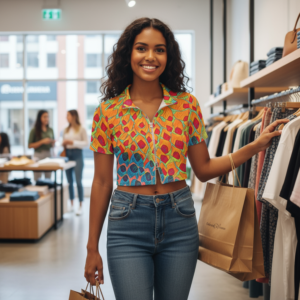 “Fractured Sunset” Short Sleeve T-shirt with Two-way Zipper
