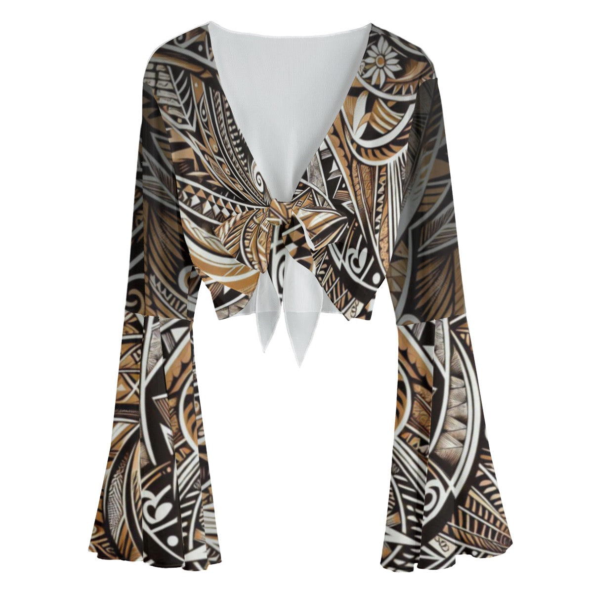 Step into our blouse and let your charm shine through! The lace-up design and bell sleeves add an extra touch of elegance to your look. The mesh fabric creates a mystical allure that will leave everyone captivated. Pair it with a camisole and shorts for a chic summer look. Shop now to elevate your wardrobe!