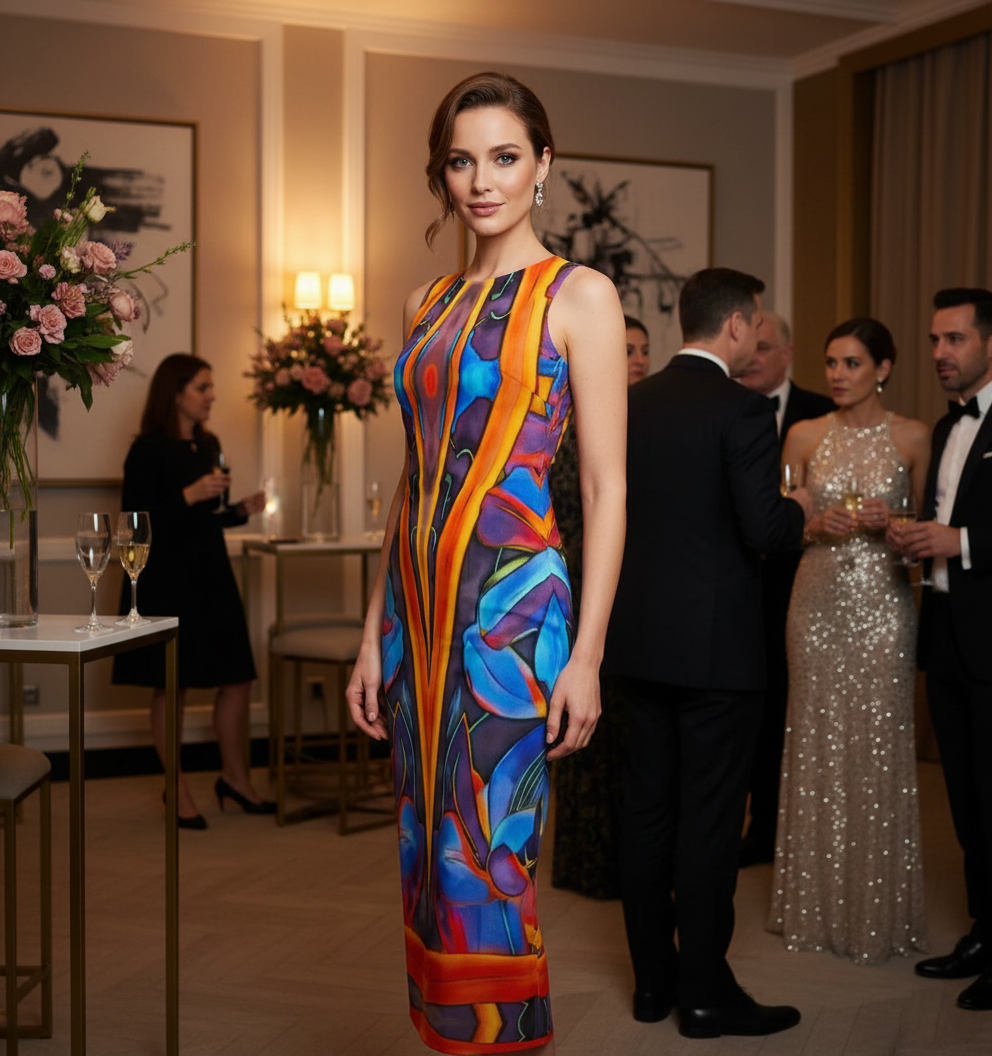 “Electric Bloom” Women's Chiffon Sleeveless Dress