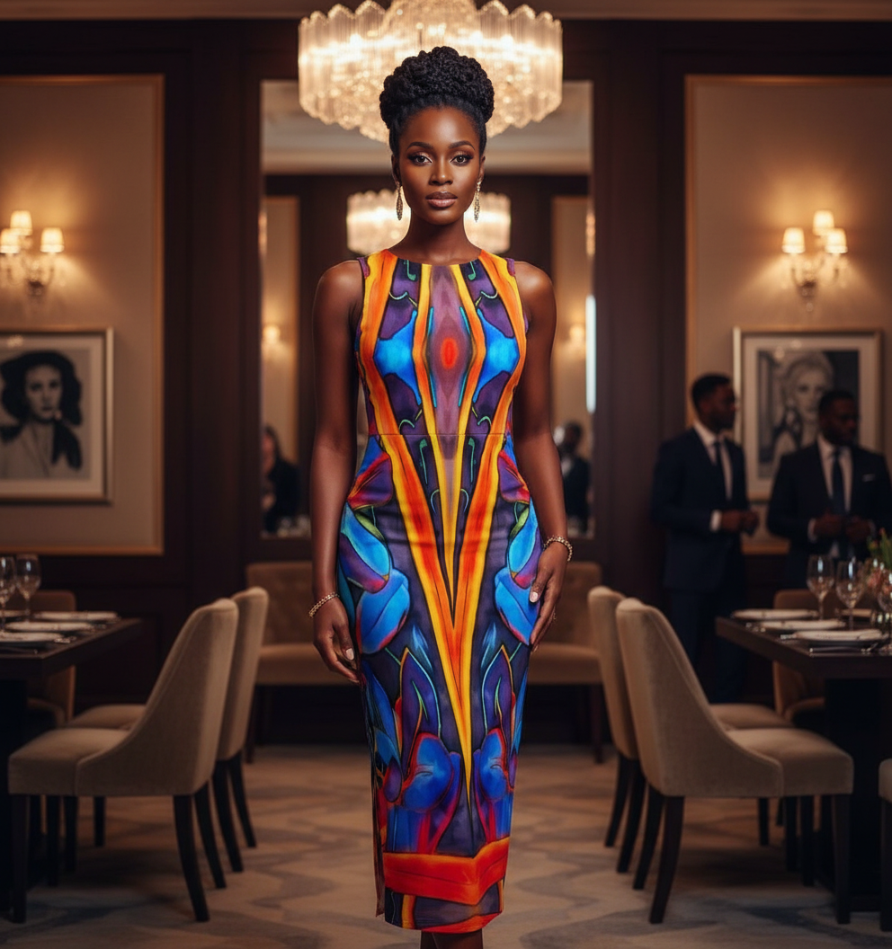 “Electric Bloom” Women's Beach Perspective Chiffon Sleeveless Dress