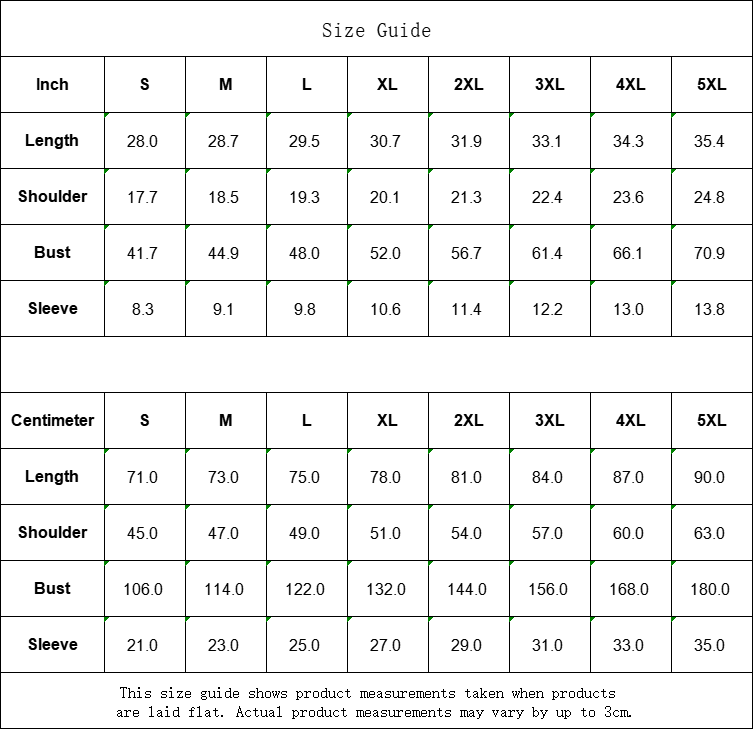 | Centimeter | S | M | L | XL | 2XL | 3XL | 4XL | 5XL |