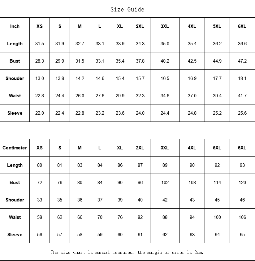 | Centimeter | XS | S | M | L | XL | 2XL | 3XL | 4XL | 5XL | 6XL |