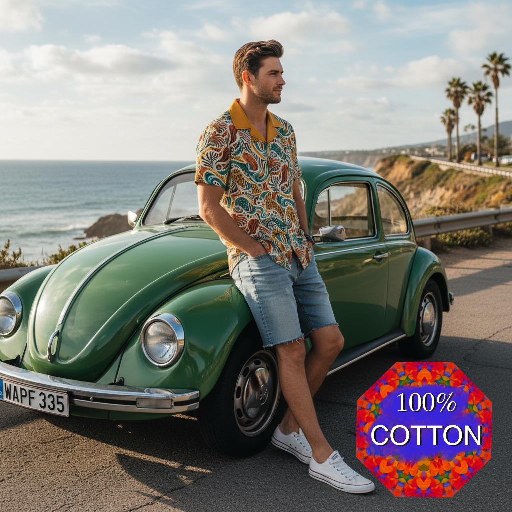 Made of natural pure cotton, it has a bamboo texture, imitation linen texture, moisture wicking, antibacterial and anti-mite. The button pocket on the left chest is practical and retro. The side slit design at the hem adds a touch of casual holiday style, suitable for matching with shorts or casual pants. From details to tailoring, it takes into account both comfort and fashion. Whether it is an island vacation or a city walk, you can wear it to create a natural and uninhibited summer atmosphere.