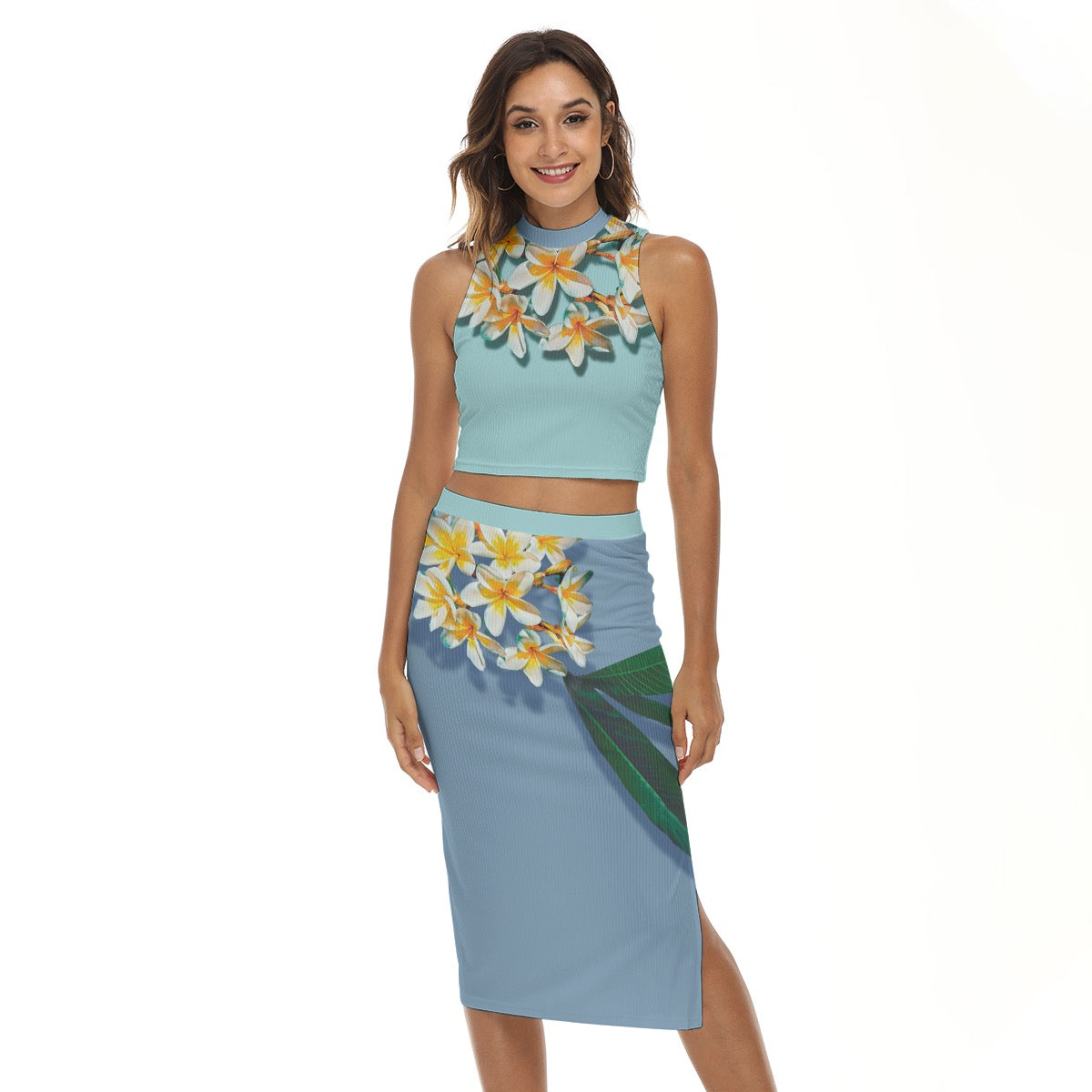 “Frangipani Horizon” Women's Tank Top & Split High Skirt Set