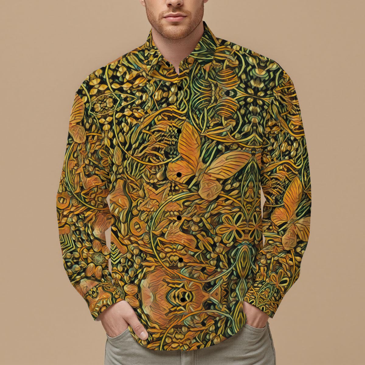 “Gilded Maze” Men's Slim Fit Long Sleeve Shirt