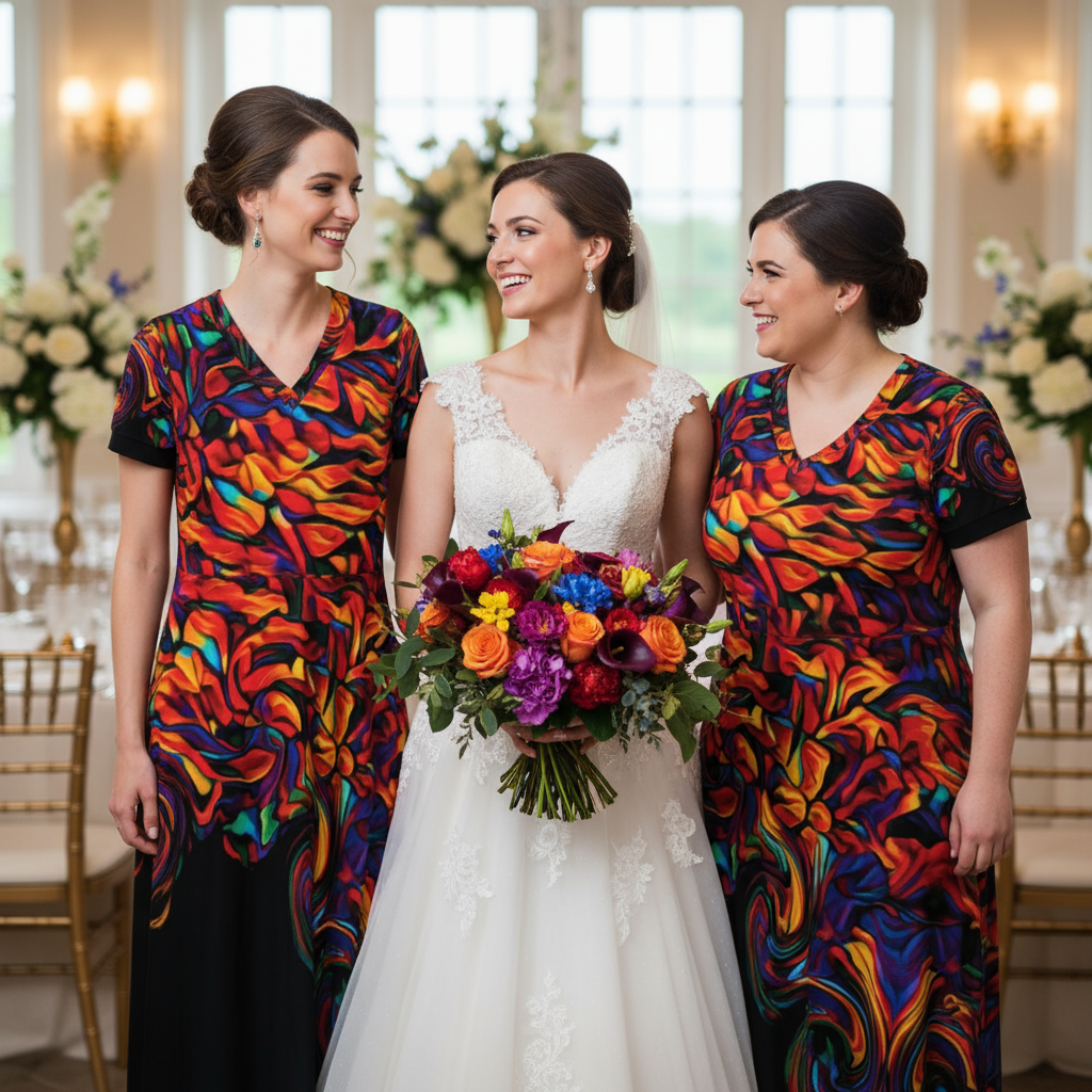 This image depicts a dynamic arrangement of vivid colours and flowing patterns, evoking a sense of movement and energy, suggesting an inferno of fire, through its lively abstract design and texture.The classic round neck sleeveless long skirt has a slit design at the side and a hidden zipper at the back, which makes it more beautiful. The skirt has a good drape feeling and is suitable for various scenes such as beach and seaside.The soft and comfortable fabric, the small design with side slits, and the V-neckline are suitable for commuting, beach and other scenes.