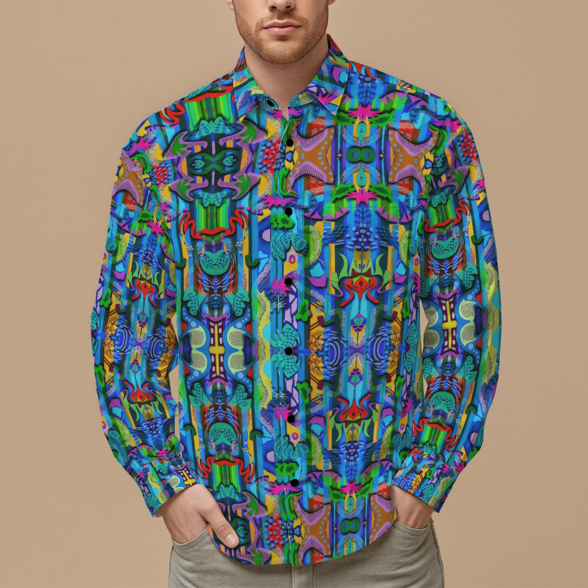“Labyrinth” Blue : Men's Slim Fit Long Sleeve Shirt