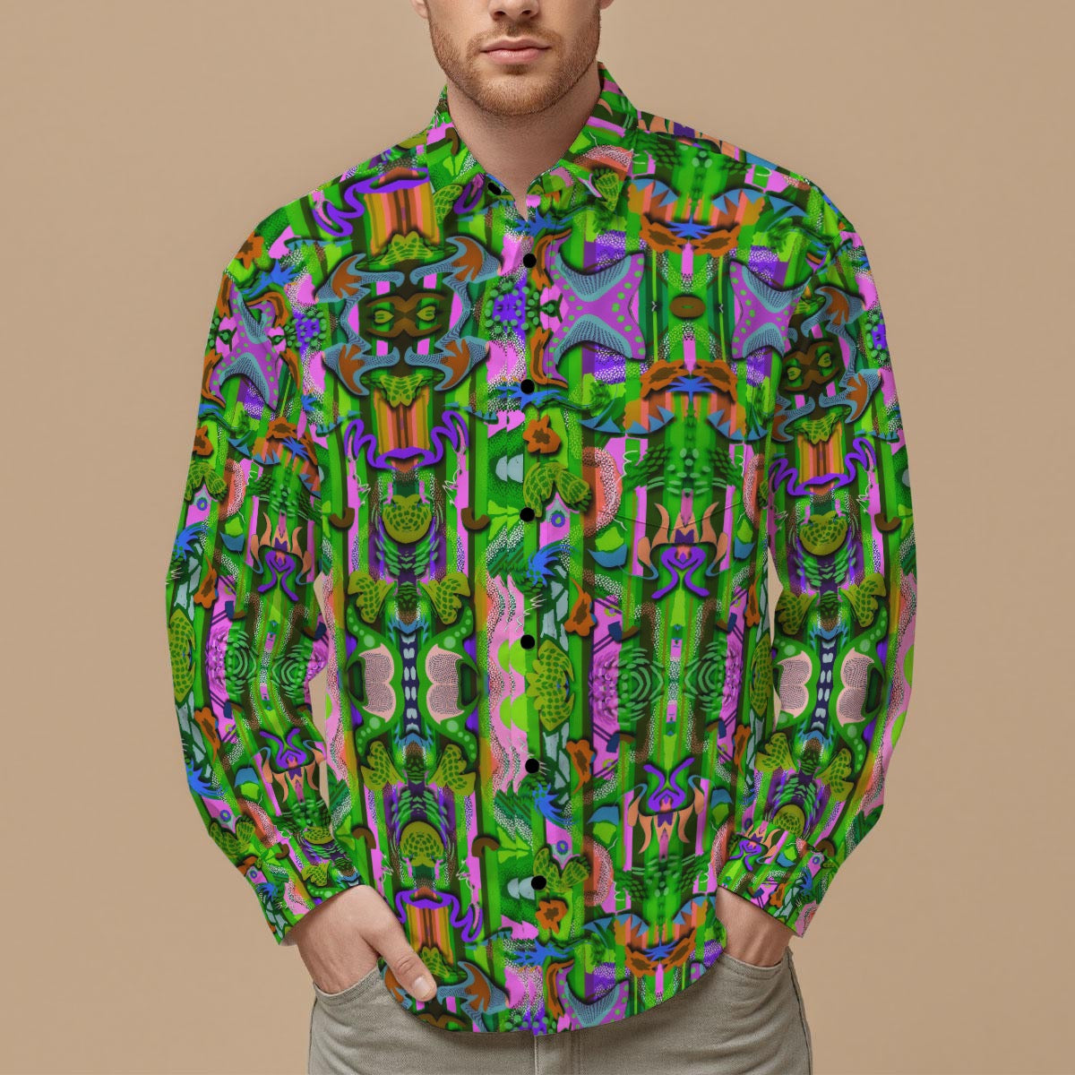 “Labyrinth :Green” Men's Slim Fit Long Sleeve Shirt