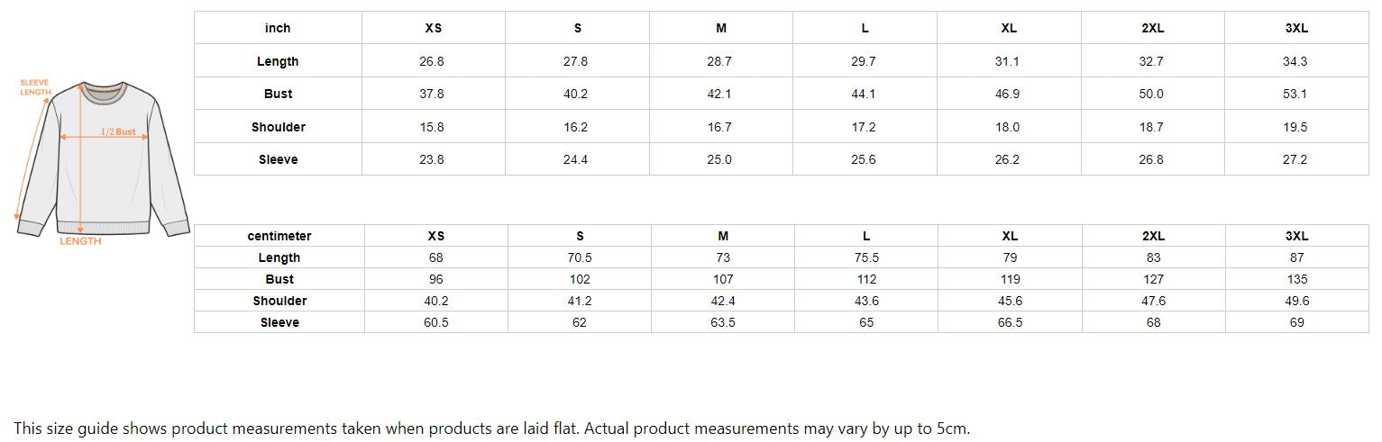 This size guide shows product measurements taken when products are laid flat. Actual product measurements may vary by up to 5cm.