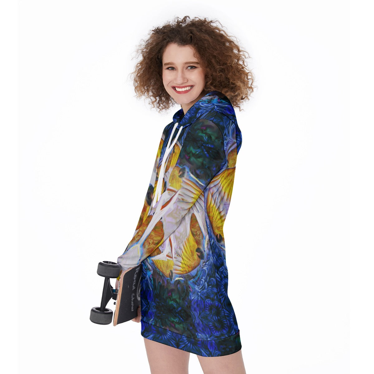 This cute women's hoodie features long sleeves, drawstrings and a kangaroo pocket. The comfortable, loose sweatshirt has extra length and could cover your hips, providing ease and warm. Of perfect length, it can be worn with a scarf, skinny jeans, leggings, sneakers, boots or heels. You can also wear this casual top under a jacket in fall and winter, or tuck it into high waist jeans for a chic look.