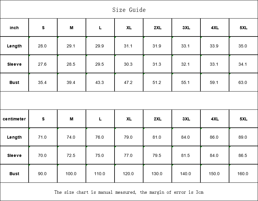| centimeter | S | M | L | XL | 2XL | 3XL | 4XL | 5XL |