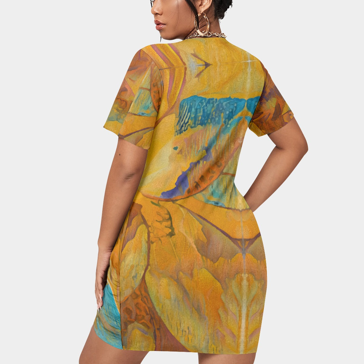 “Mirage” Women’s Stacked Hem Dress With Short Sleeve(Plus Size)