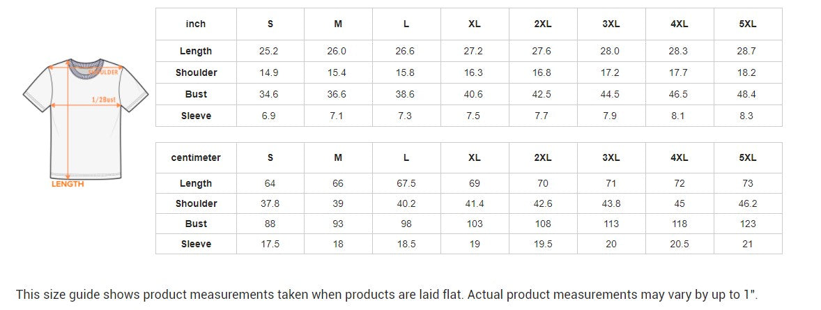inch | S | M | L | XL | 2XL | 3XL | 4XL | 5XL |