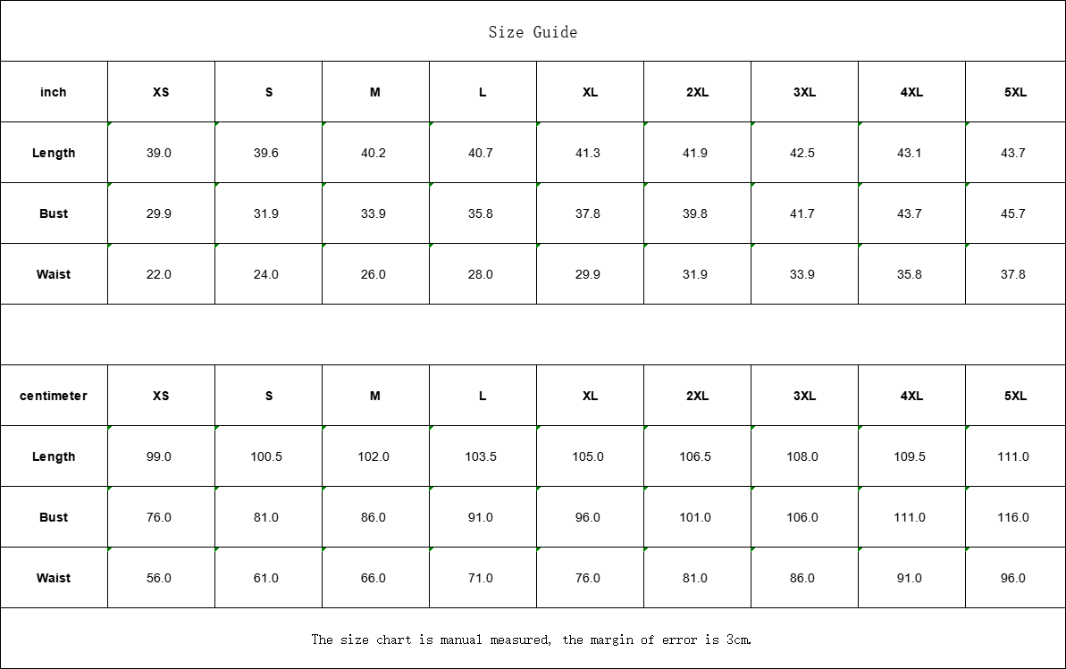 | inch | XS | S | M | L | XL | 2XL | 3XL | 4XL | 5XL |