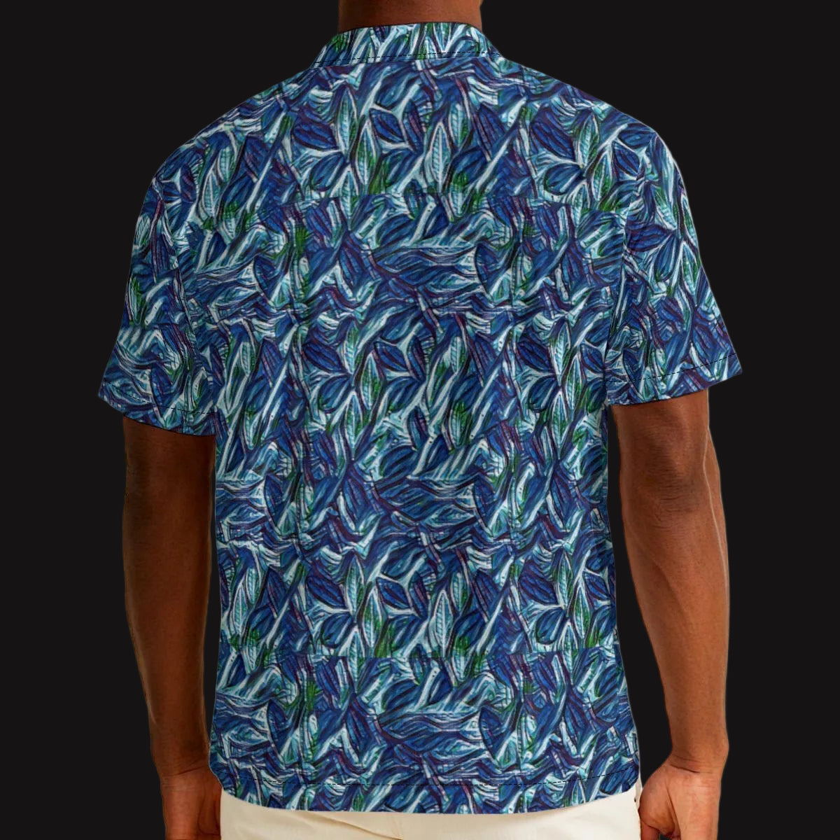 “Sapphire Stream” Men's Hawaiian Shirt With Button Closure |115GSM Cotton poplin