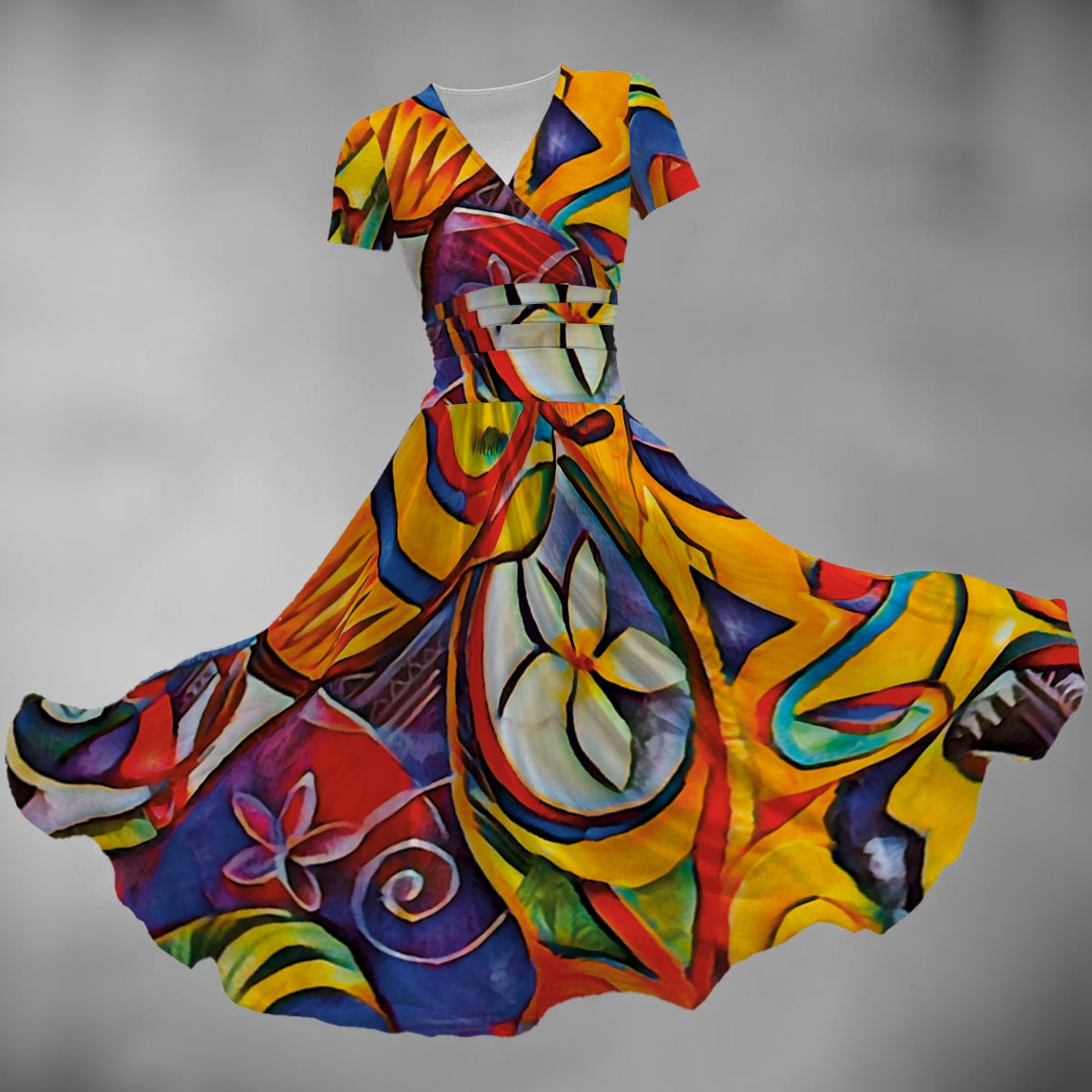 “Sassy” Women's Short Sleeve V Neck Midi Dress