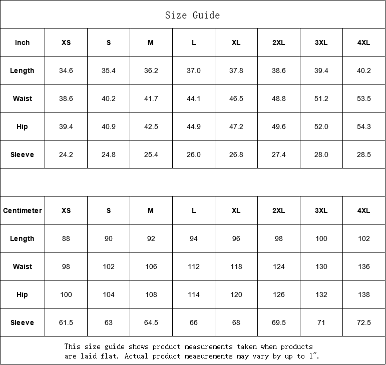 | Centimeter | XS | S | M | L | XL | 2XL | 3XL | 4XL |