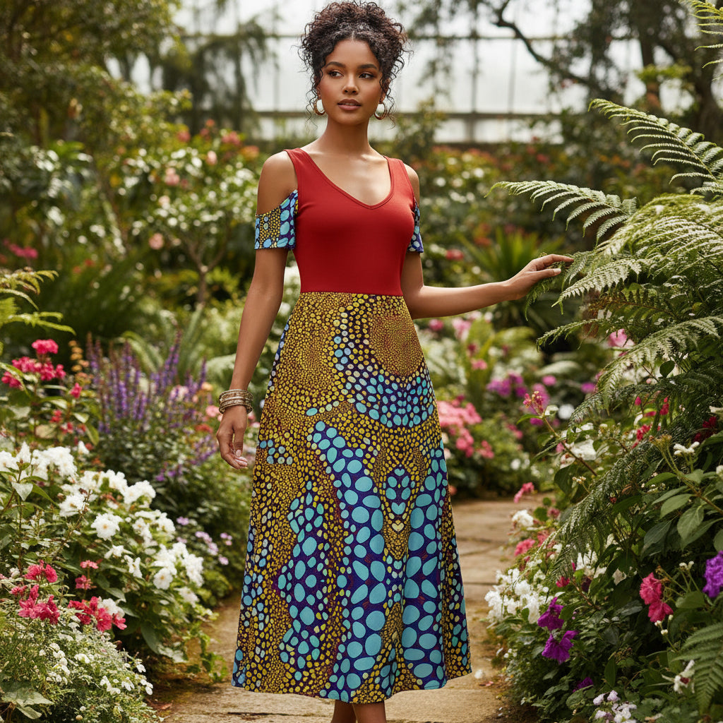 “Sunstone” Women's V-neck Off-shoulder Dress