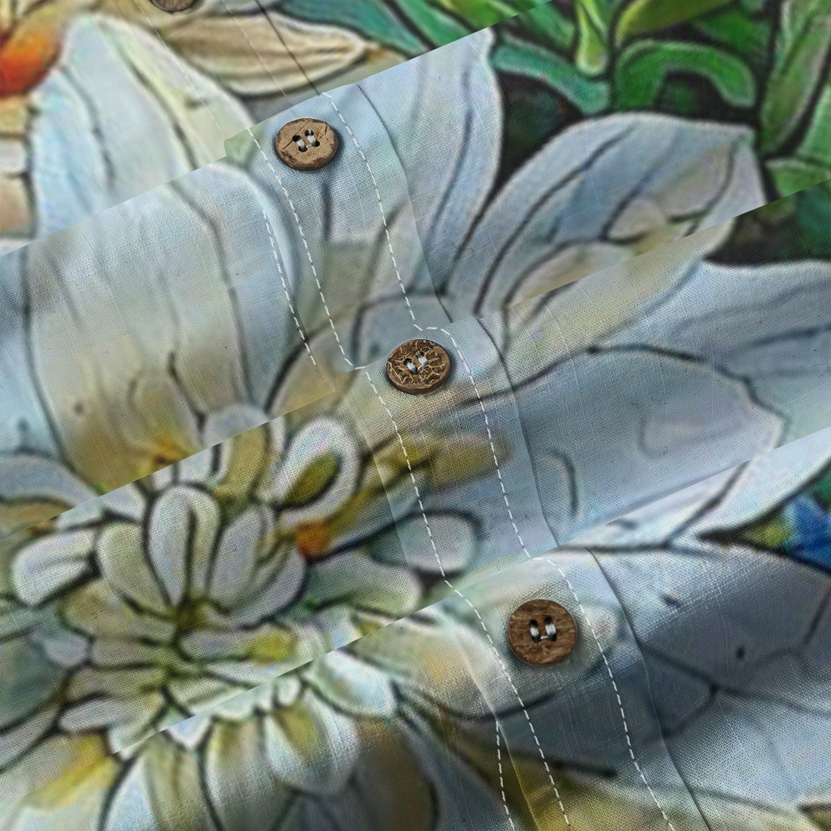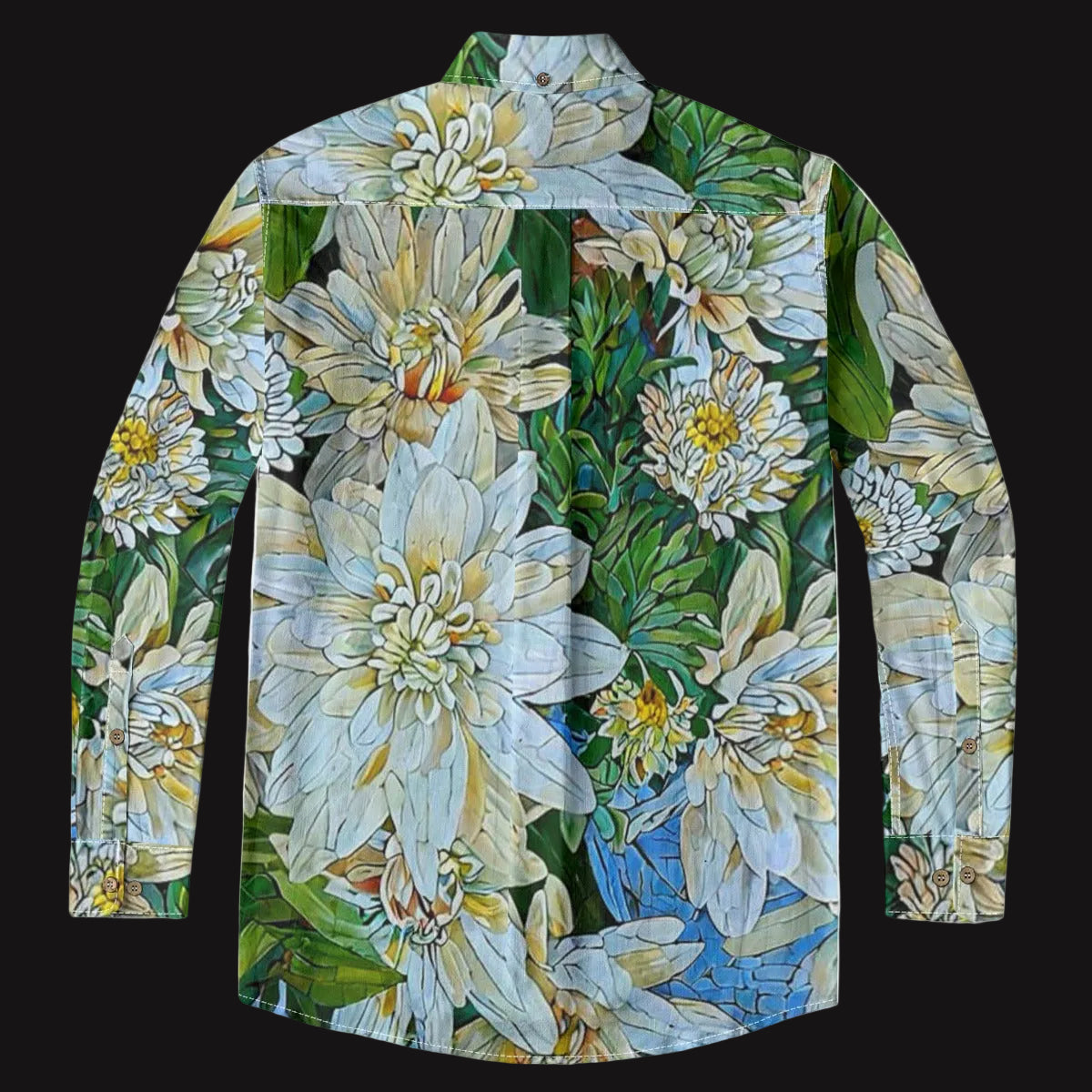 “White Floral Medley” Men's Casual Lapel Long Sleeve Shirt|125GSM Cotton